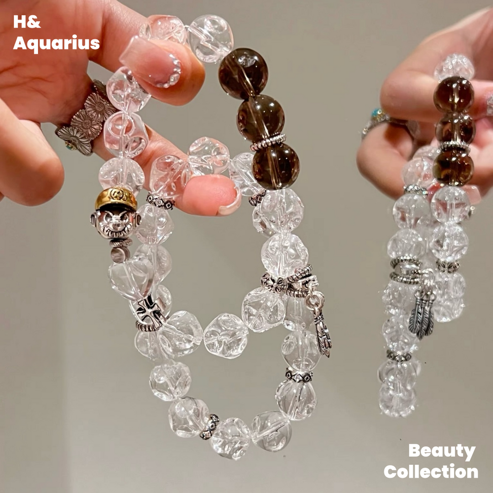 925 silver feather bracelet with white crystal planet beads, blending ethereal feather charm with cosmic allure. It¡¯s a luxury stackable piece, lightweight and versatile, adding a dreamy, sophisticated touch to any layered jewelry look or worn alone for understated glamour.