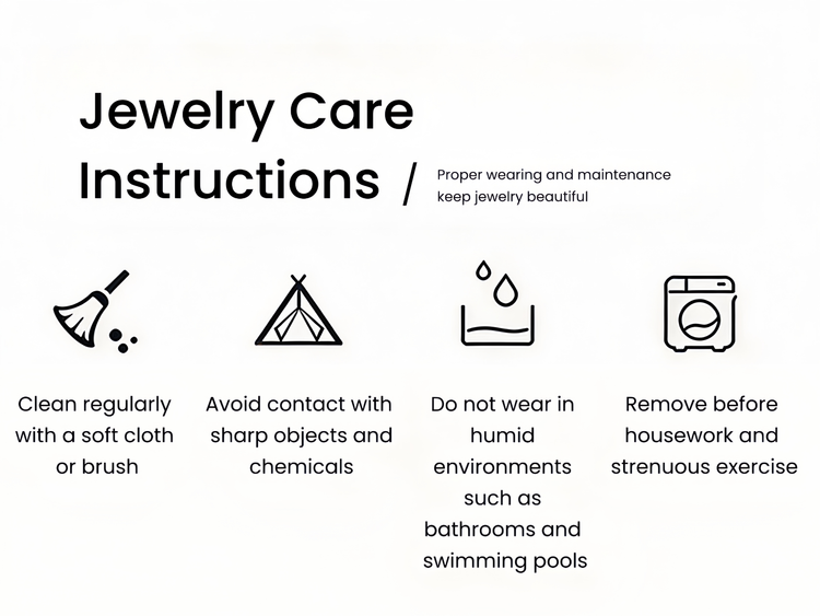 - Care Note: Daily wear (scratches, friction) or contact with cosmetics/skincare products may cause plating to peel, fade, or discolor. To extend the plating’s lifespan, keep the jewelry dry and clean—avoid wearing it while bathing or cooking.