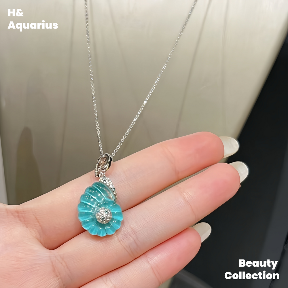 925 silver synthetic zircon silver products small conch necklace/earrings blue light luxury niche silver jewelry