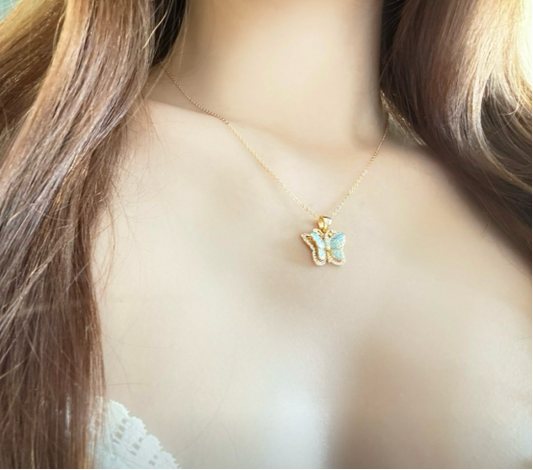 This necklace is not only an accessory, but also a metaphor for "light life" - the lightness of a butterfly breaking out of its cocoon, just like us shedding our heaviness and rushing to a state of relaxation. The brightness of the light blue butterfly wings is also like a small blessing in daily life, which makes the outfit more stretched and gentle in spring.