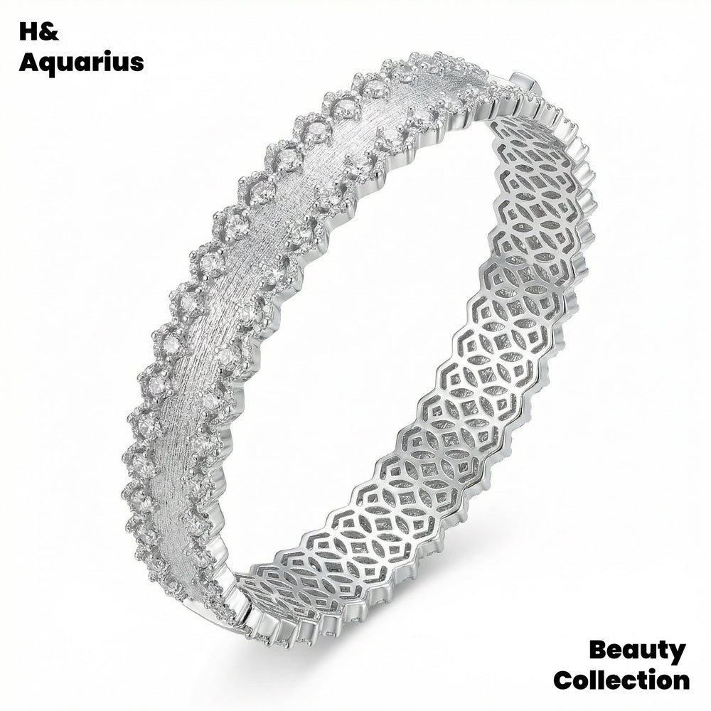 925 Silver & Zirconia Brushed Lace Bangle - Vintage Luxury Classic Bracelet