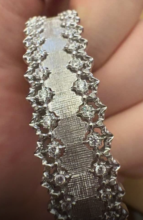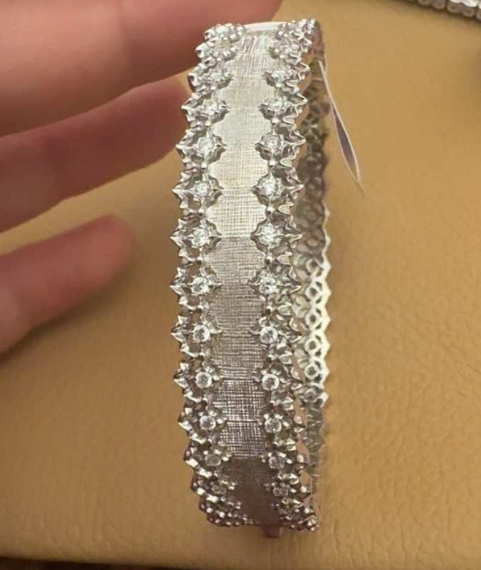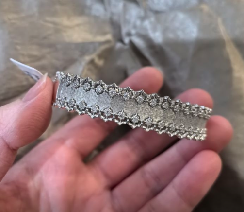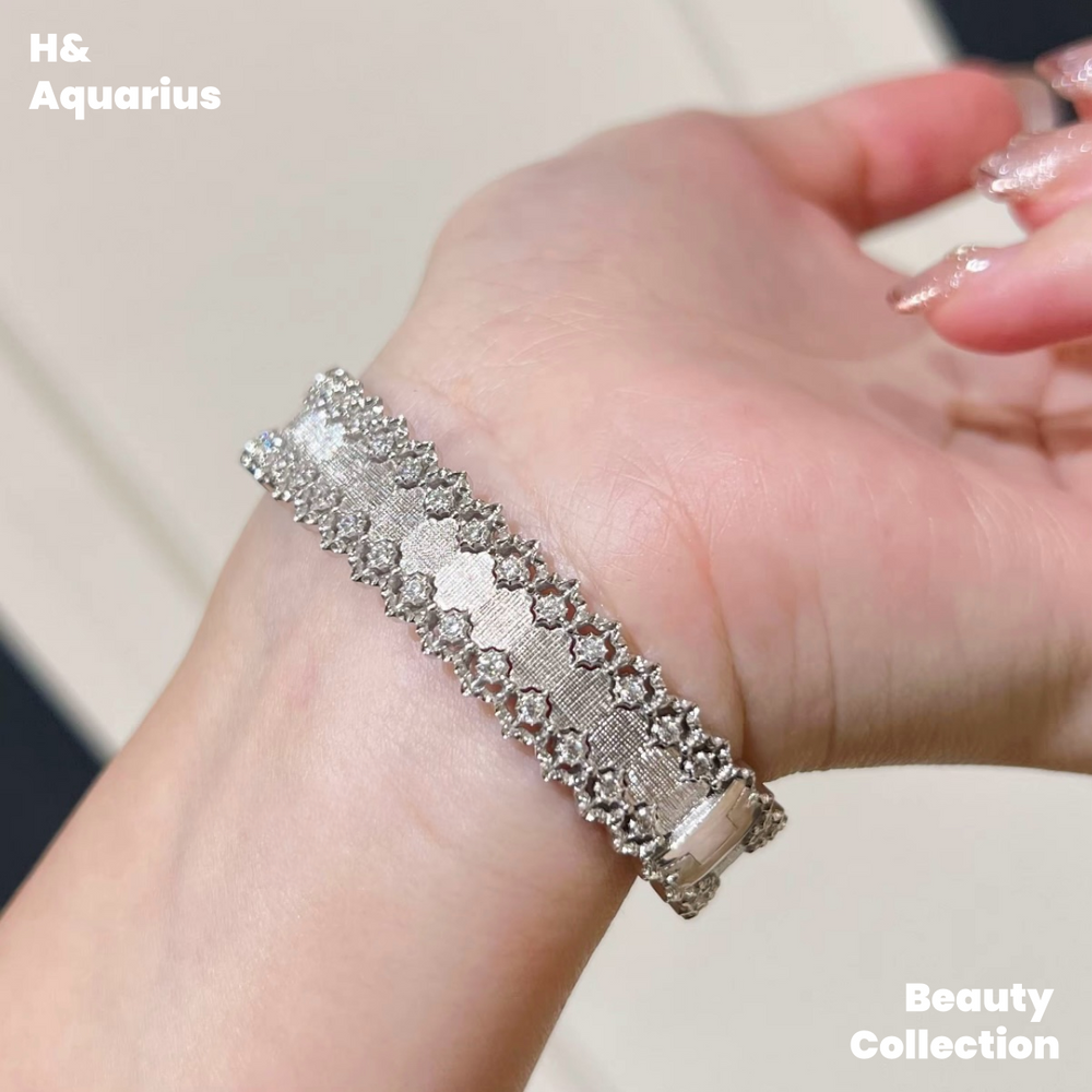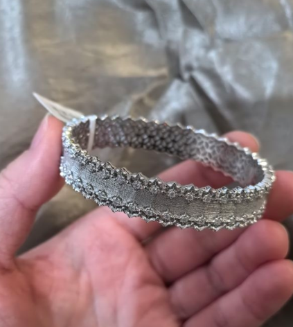 Step into timeless vintage luxury with this 925 Silver & Zirconia Brushed Lace Bangle. Made from fine 925 sterling silver with an elegant brushed finish and delicate zirconia accents, its intricate lace-inspired design blends classic charm with modern refinement. Smooth, comfortable, and endlessly versatile, this bangle elevates any outfit with soft, old-world elegance and lasting quality.