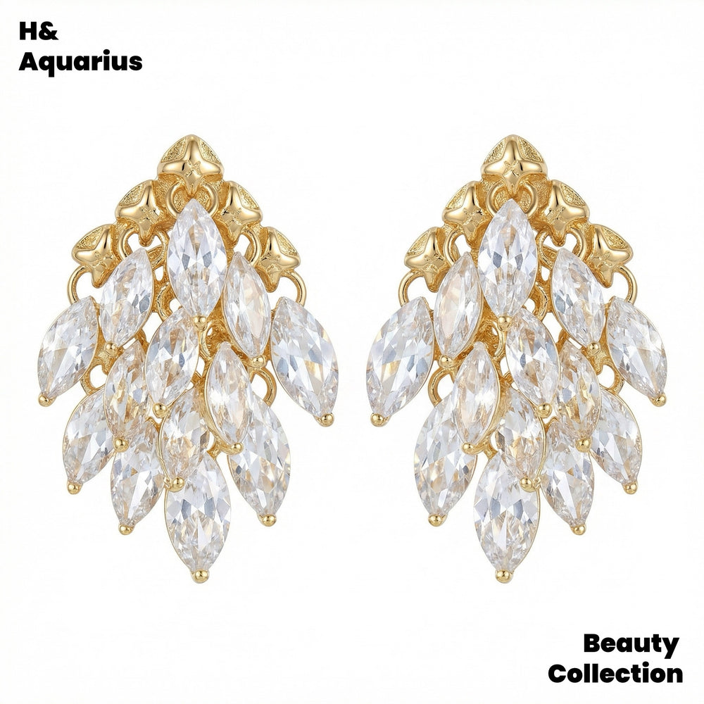 925 Silver & Zirconia Starry Dome Earrings - Luxury Elegant Statement Dangle Earrings