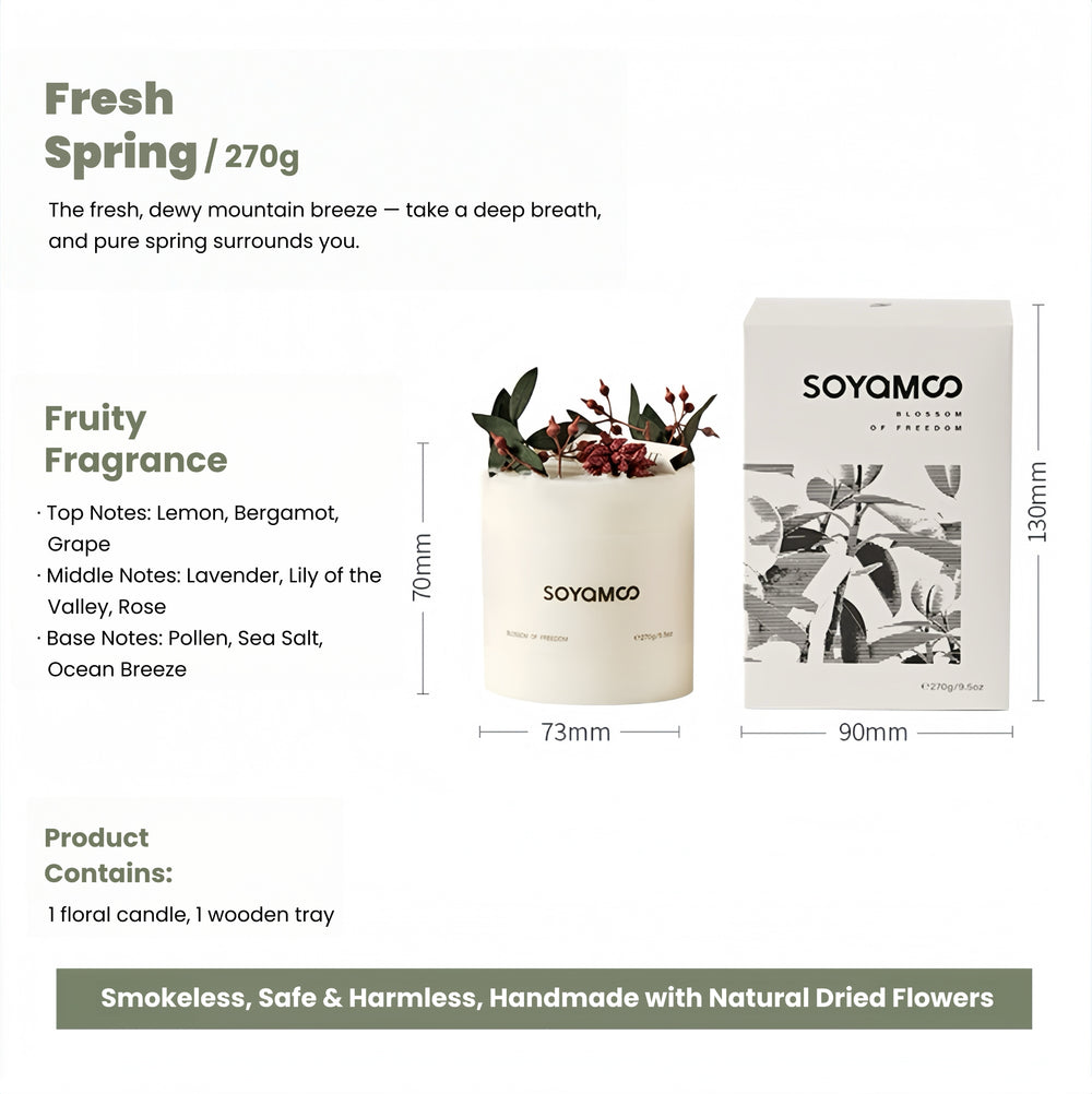 The inspiration for this aromatherapy comes from the morning fog in the mountains encountered during a spring outing - in the mountains and forests in the early morning, the fog is wrapped in the fragrance of flowers and plants, the coolness of the dew, and the water vapor of the wind sweeping over the stream. We want to encapsulate this "spring that can be touched without traveling far" into an aromatherapy, so that the moment you light it, you can turn the room into a mountain corner where spring is hidden.