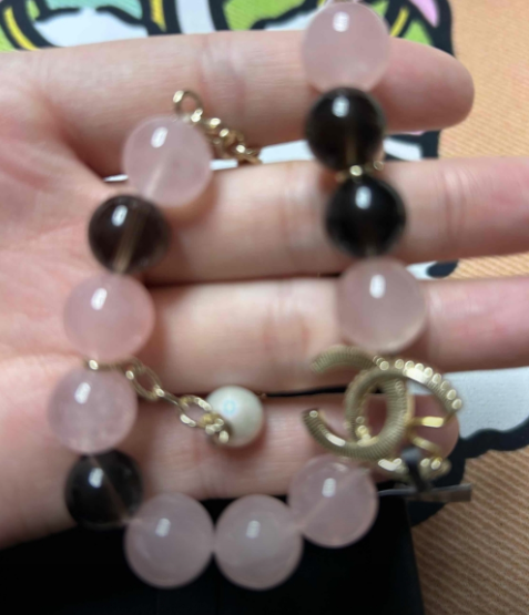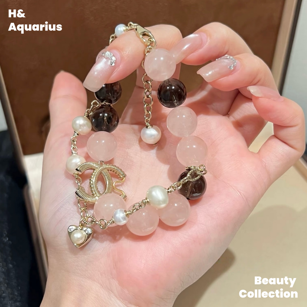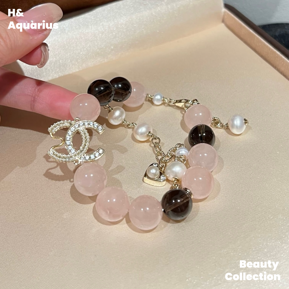 BLACK PINK Style Bracelet - Light Pink Natural Crystal Luxury Chanel Style Bead Chain