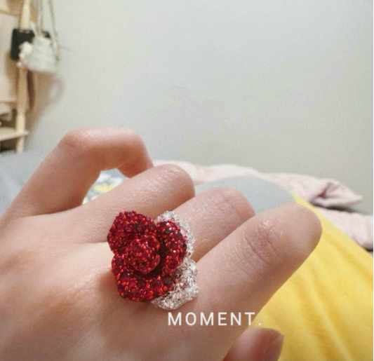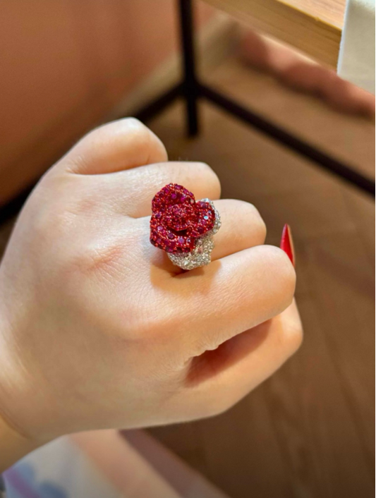 This ring is not only an accessory, but also a carrier of "warm self" - the intensity of red roses, representing unrestrained emotions and uncompromising romance; The shape of the gemstone that never fades is like the "warmth of the moment" forever. It is not implicit tenderness, but blatant liking, a "declaration of emotion" at the fingertips.